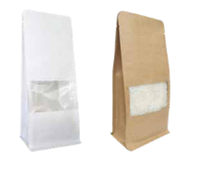 Les sachets à fond plat avec fenêtre en papier kraft 100 % vierge sont une autre solution pour mettre en valeur les produits.